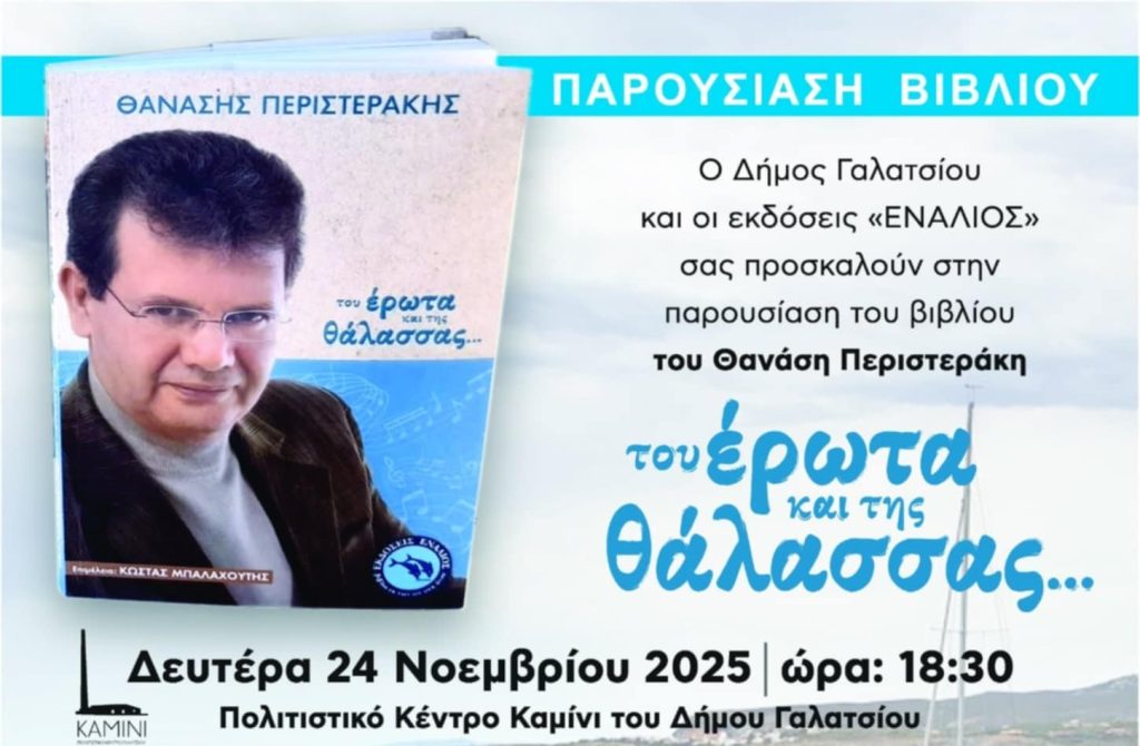 Τη Δευτέρα 24 Νοεμβρίου 2025, στο Πολιτιστικό Κέντρο Καμίνι του Δήμου Γαλατσίου (Χρ. Καψάλη 14-16), στις 18:30 με ελέυθερη είσοδο, παρουσιάζεται η βιογραφία του Θανάση Περιστεράκη.